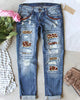 AMERICAN FOOTBALL LEOPARD RIPPED JEANS