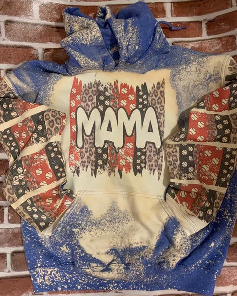 Baseball Leopard Mama Bleached Hooded Sweatshirt