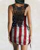 Lace Splicing American Flag Drawstring Mini Dress